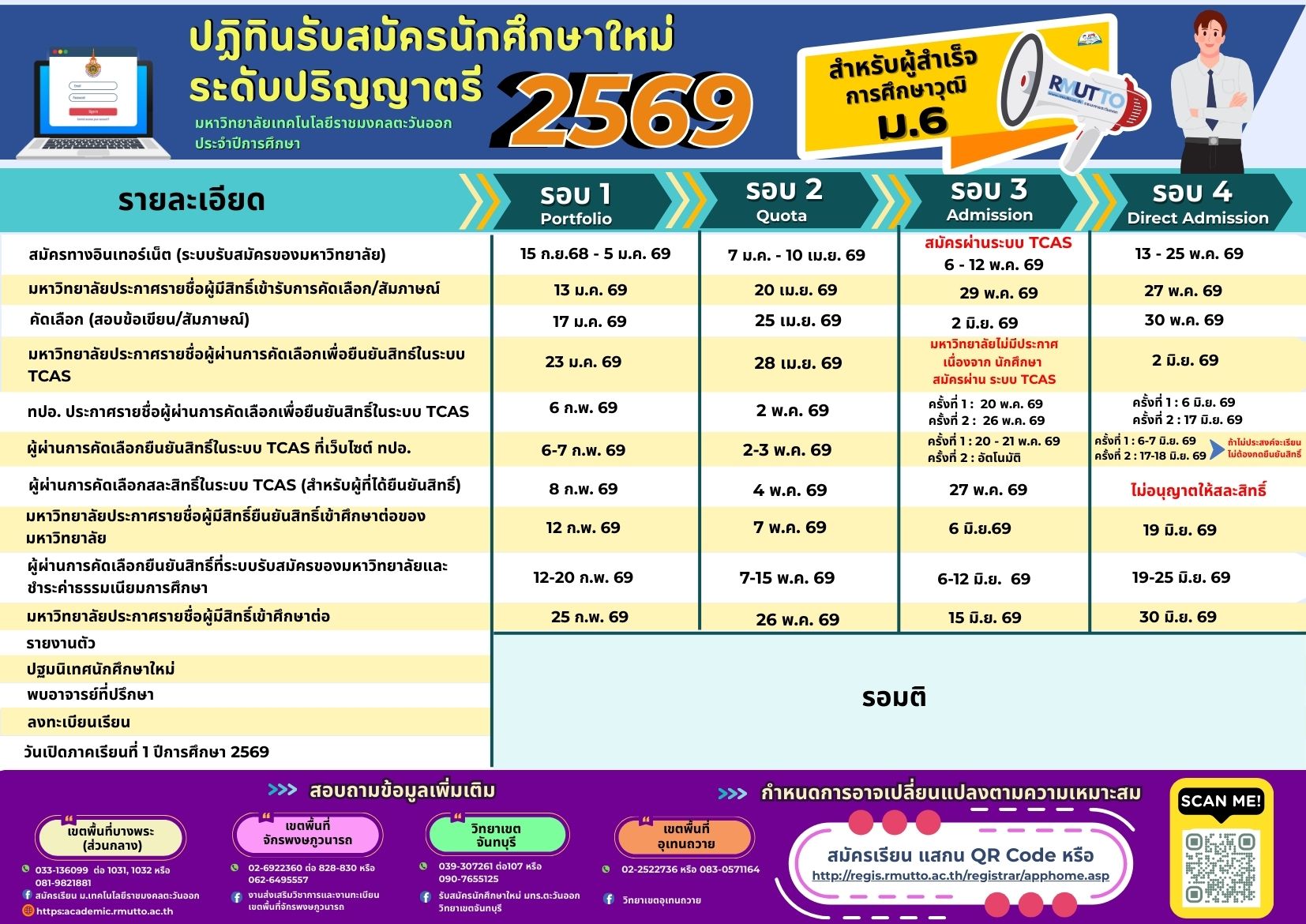เปิดรับสมัครนักศึกษาใหม่ ระดับปริญญาตรี รอบโควตา 2569